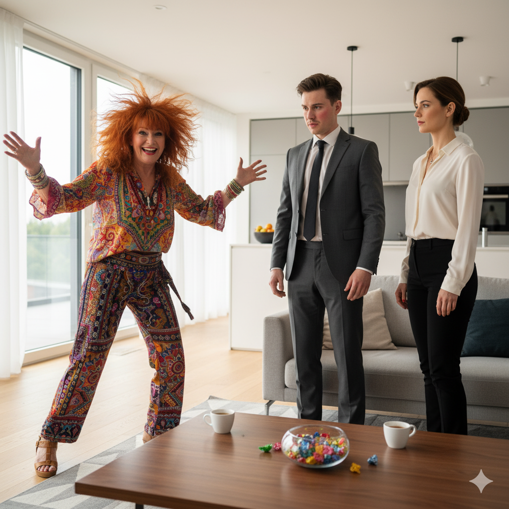 Гостья обнаружилась в зале напротив телевизора с чашкой кофе в руке. Вазочка с конфетами была пуста, а фантики валялись по всей комнате.