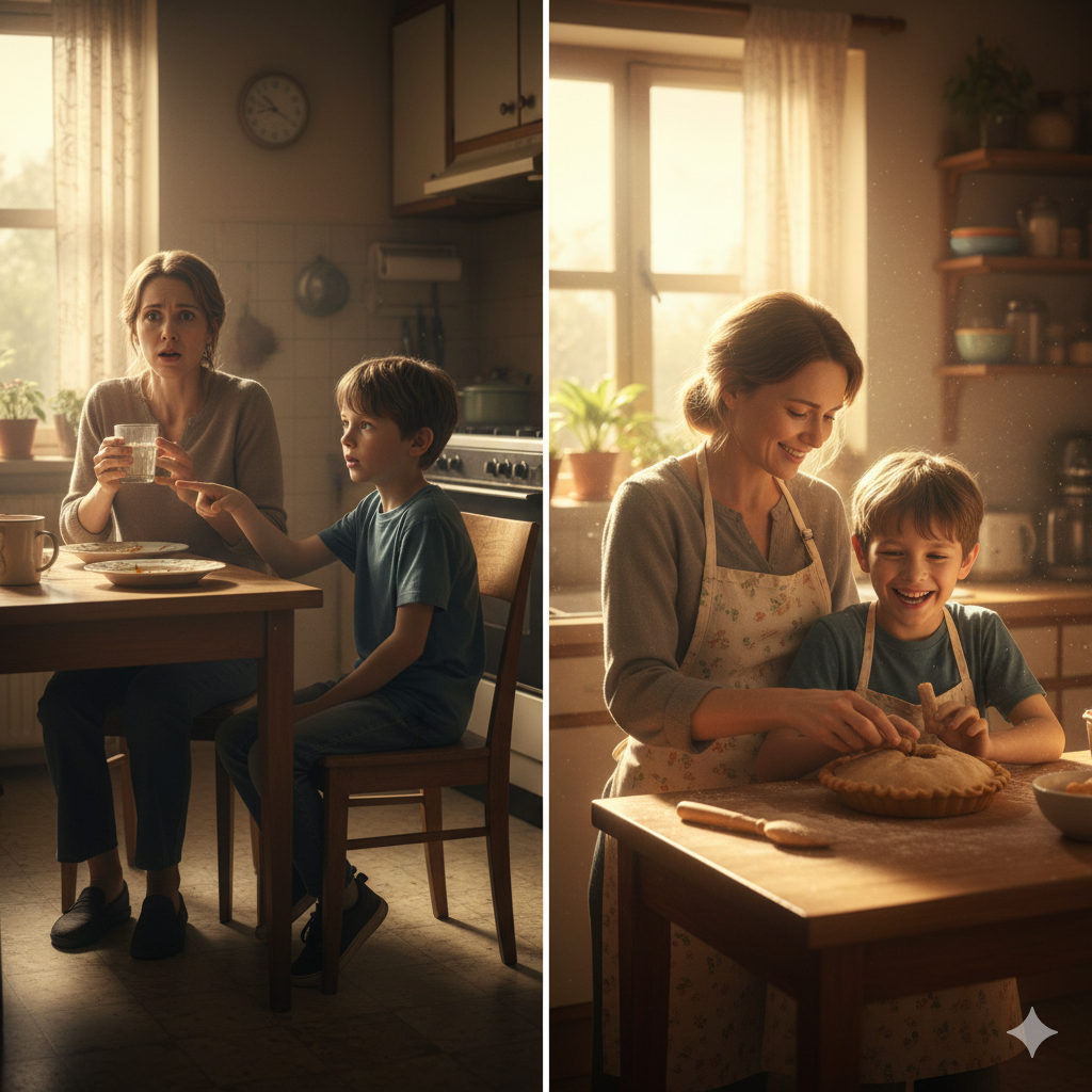 Галина замерла, держа миску с тестом. Она поставила её на стол и обняла сына.