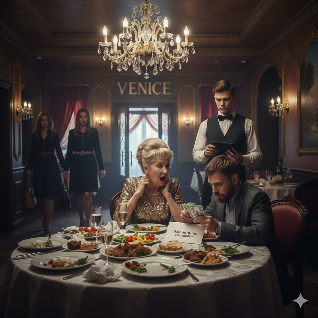 А в ресторане «Венеция» Галина Петровна смотрела, как сын трясущимися руками пересчитывает купюры из конверта, бормоча что-то про грабительские цены. Официант стоял рядом с непроницаемым лицом, держа кожаную папку со счётом.