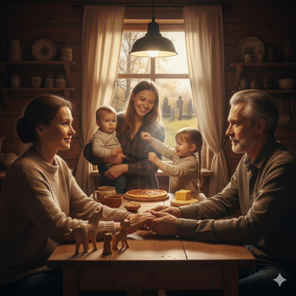 Марина с тихой улыбкой посмотрела на Гришу. И подумала, вот оно, счастье. Простое, тихое, настоящее. Запах выпечки, теплый свет в окнах, люди, которые стали семьей.