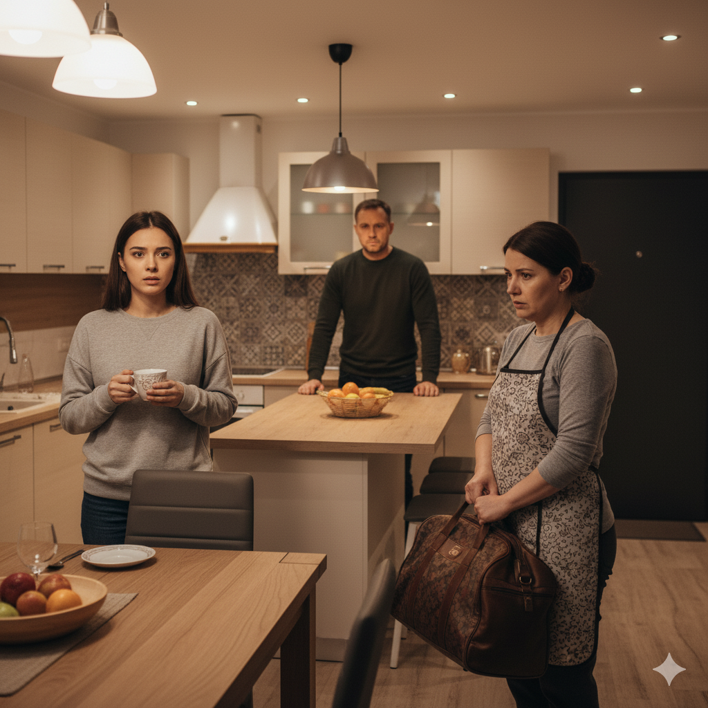 Однажды вечером, когда вся семья собралась за ужином, раздался звонок в дверь. Алина, нахмурившись, пошла открывать. На пороге стояла Лариса Петровна с большой сумкой в руках.