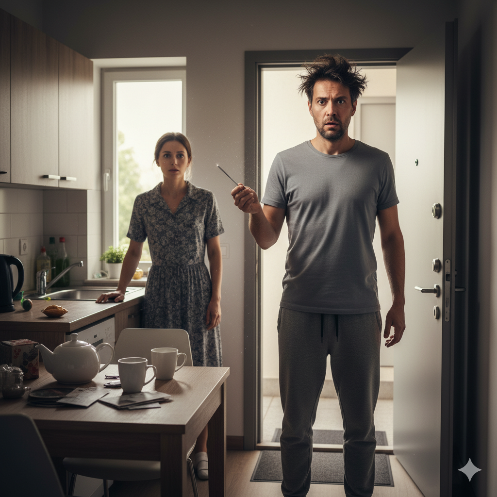 Он кинулся наверх, и лихорадочно стал звонить в свою квартиру. Когда испуганная жена открыла ему, он, задыхаясь от волнения, прямо с порога спросил: