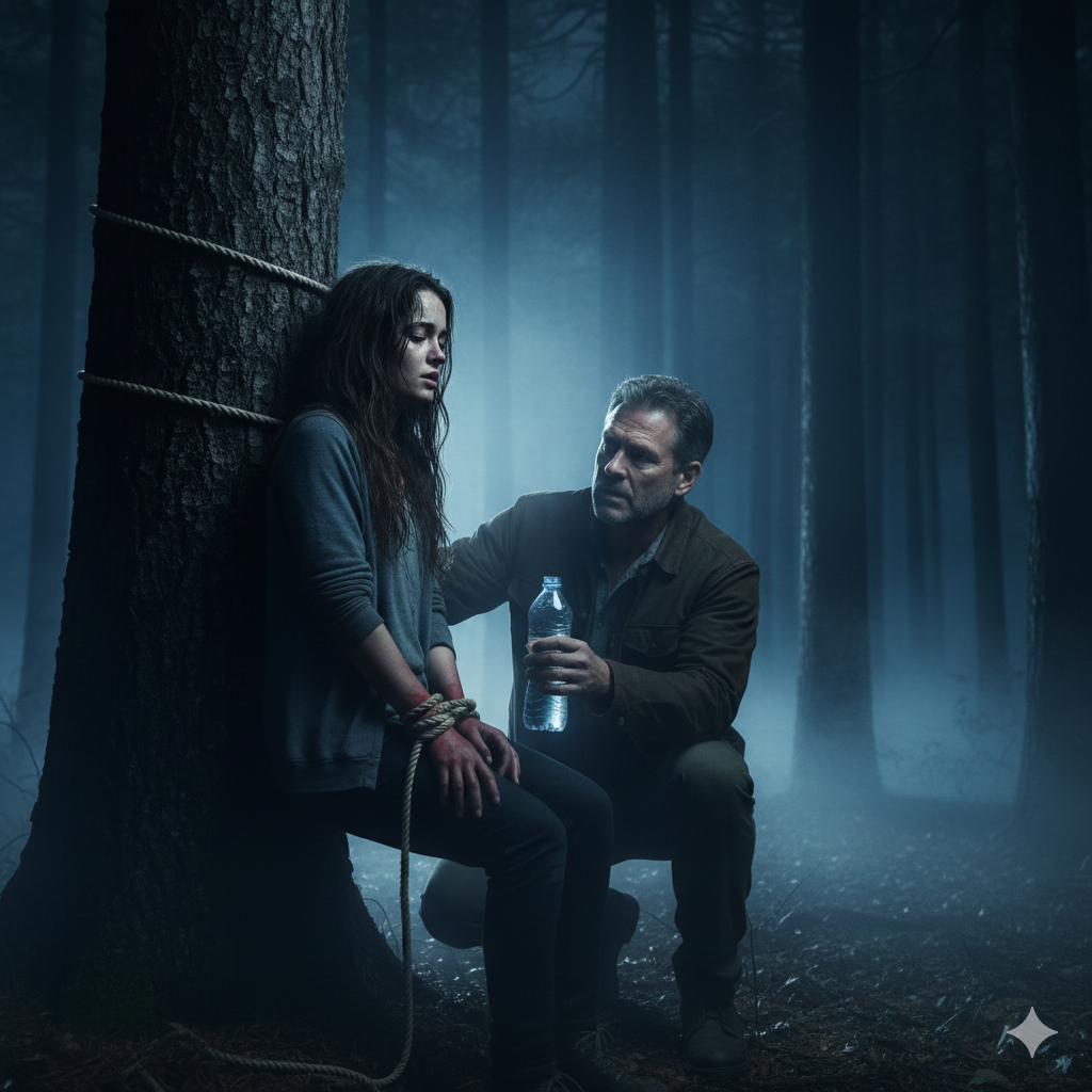 Ирина огляделась и пошевелила руками. Она крепко привязана к дереву. Кругом лес. Кроме свекрови, неподалёку стоят двое мужчин.