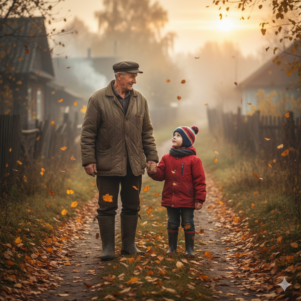 Тёплая, сухая осень. Вечер. С последней электричкой, что пришла из города, приехал Семён в деревню к деду. Удивился, когда на перроне его встретил.