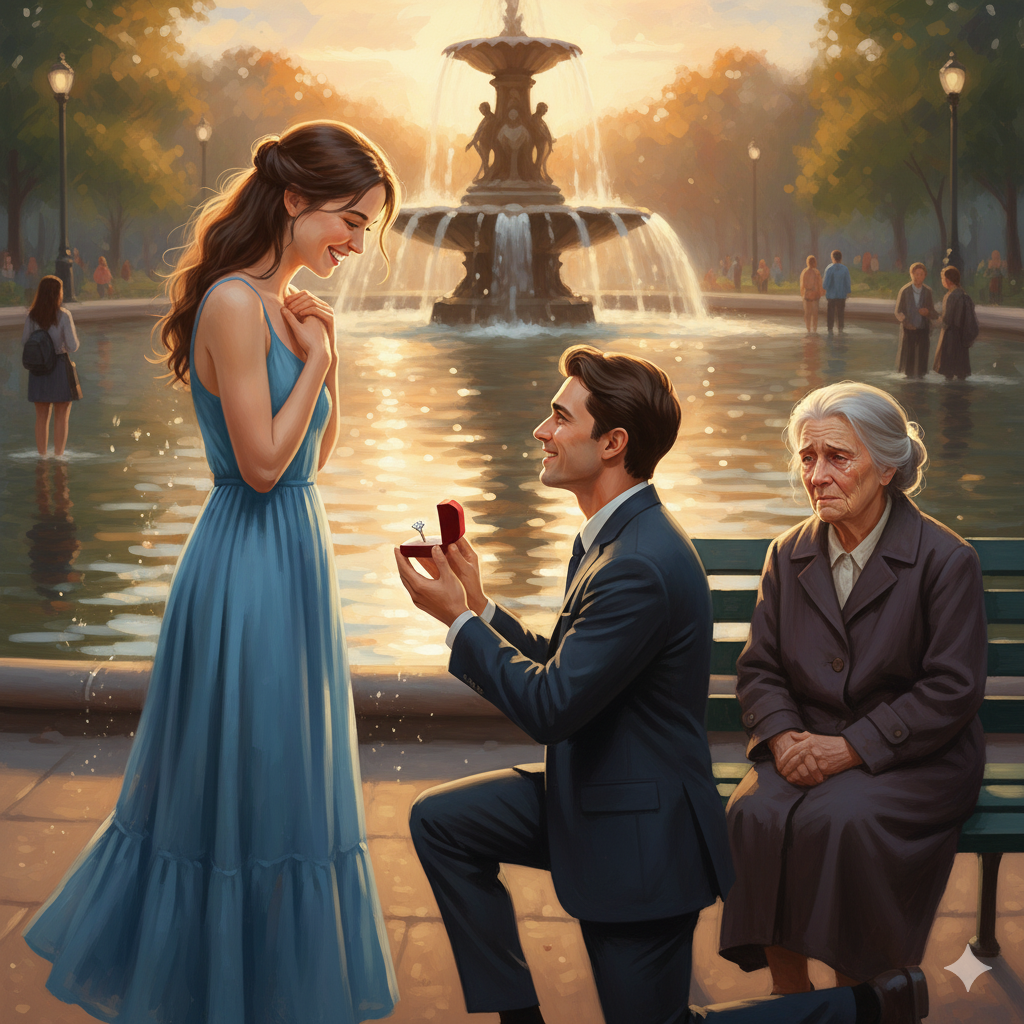 Они подошли к фонтану ровно в шесть. Андрей достал коробочку с кольцом, опустился на одно колено, и Мария сказала «да», зная, что выбрала правильный путь.