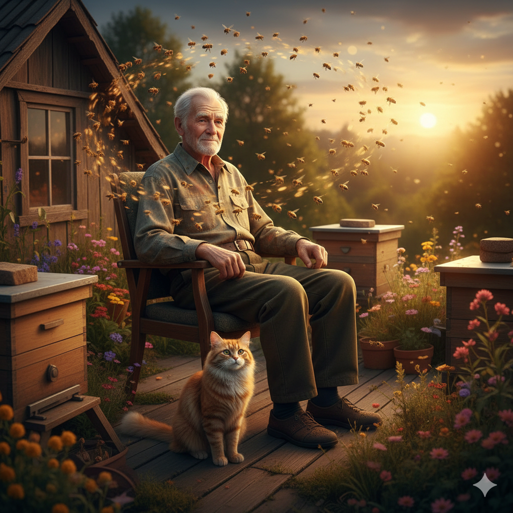 Он, видите ли, общался с пчёлами, как с людьми. Рассказывал им что-то своё, смеялся, грустил. Жена смотрела на него и крутила пальцем у виска.