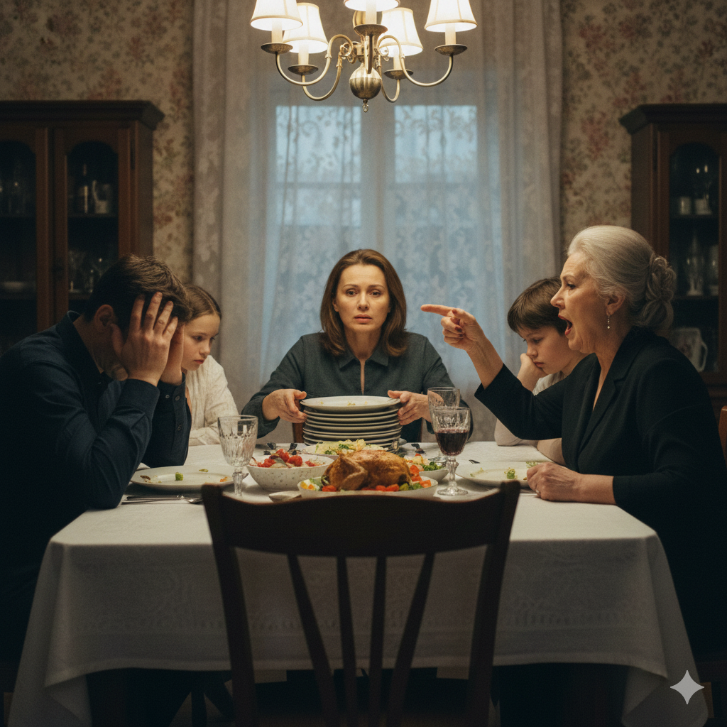 Она перевела взгляд на детей, невольных свидетелей этого скандала. Катя смотрела в стол, её щёки горели румянцем стыда. Антон был бледен, его руки мелко подрагивали. Не выдержав, она взяла себя в руки и твердо произнесла: