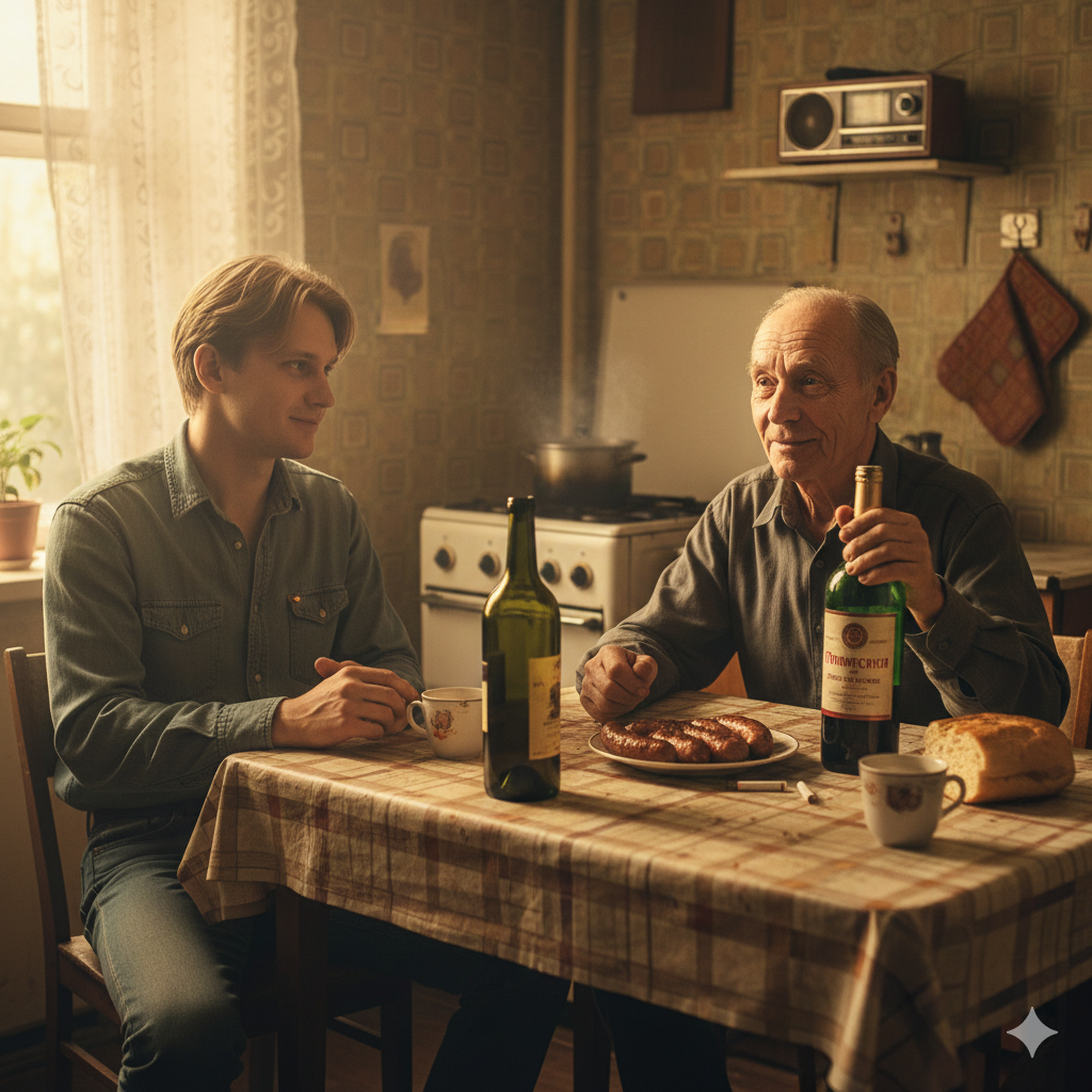 От сухого вина сосед решительно отказался: «Кисляк, косорыловка, не люблю», сосиску взял только одну. Для себя притащил из комнаты бутылку дешёвого портвейна «Приморский», наполовину опустошённую. Выпили за знакомство, потом за моё новоселье.