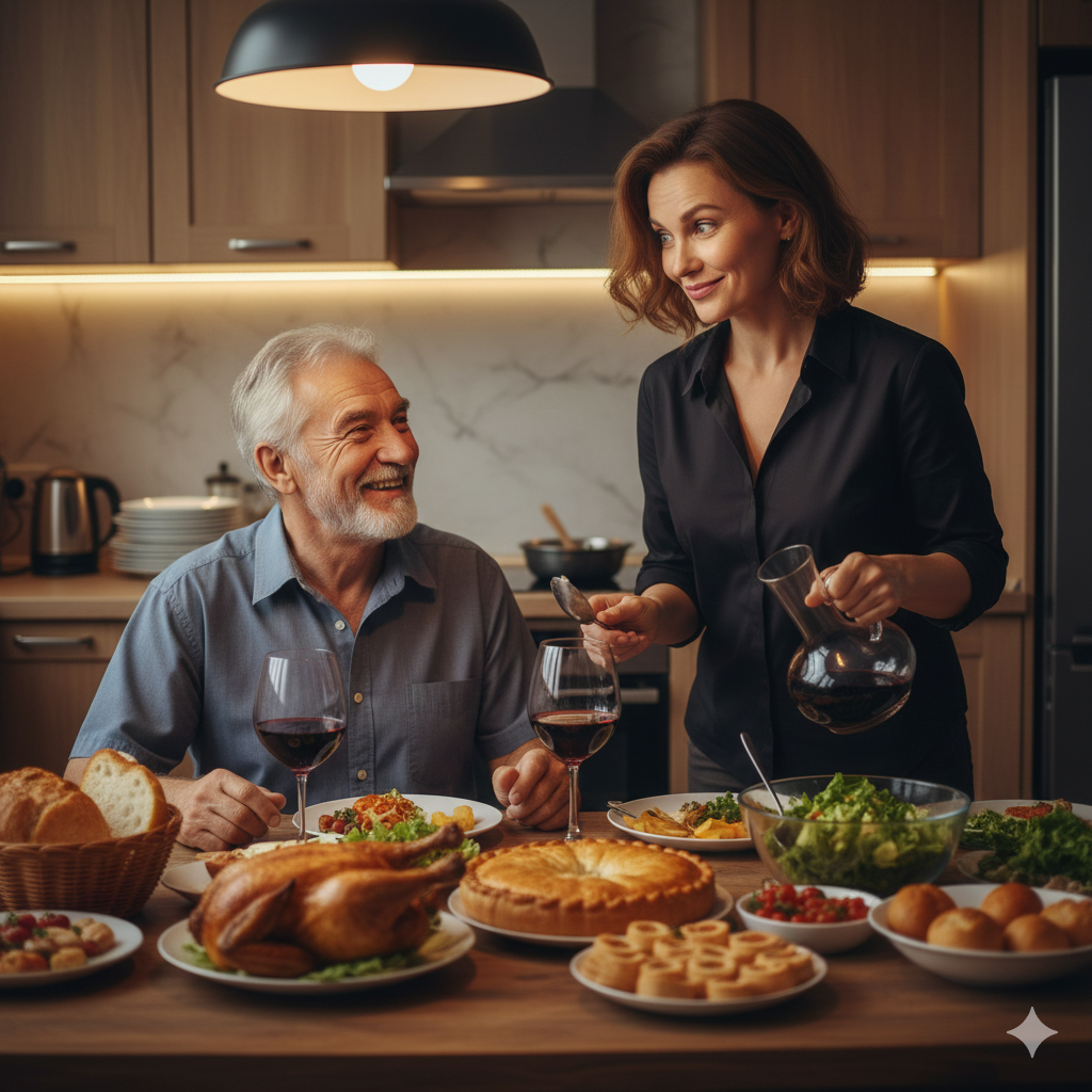 Серафима сама ухаживала за Николаем, он этого и не умел. Подливала вина, накладывала в тарелку салат, да побольше, подвигала поближе пироги.