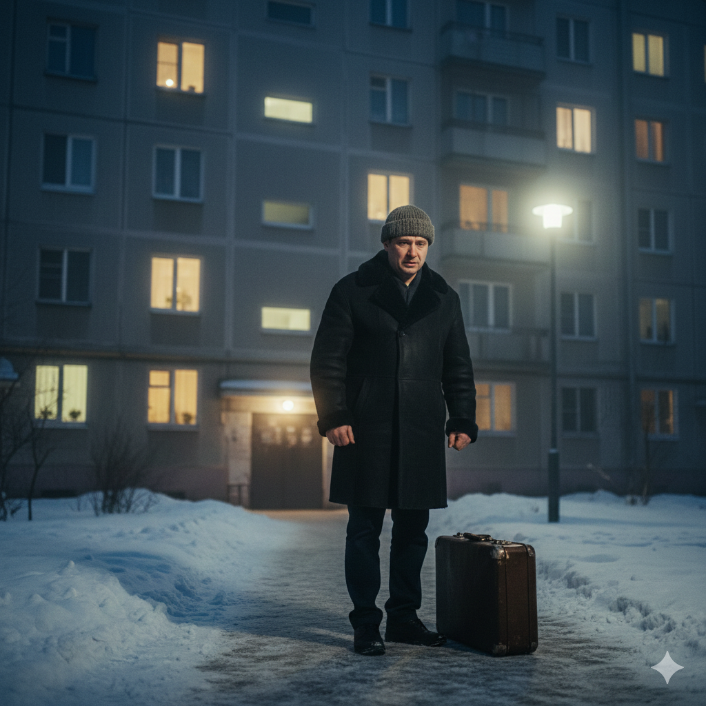 Конец января. Прошла неделя, как Борис ушёл из дома. Всё это время он жил у друзей. Ночевал по очереди то у одного, то у другого. А сегодня утром он вернулся. Но уже через час после своего возвращения он с чемоданом вышел из квартиры и, не понимая, как теперь жить дальше, стоял у подъезда своего дома.