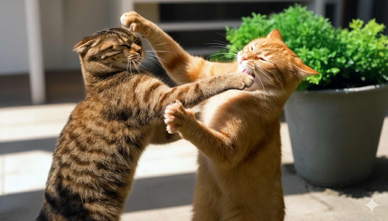 Шерсть летела клочьями, а “мужики”, вцепившись друг в друга когтями, катались по траве и так верещали, что двор опустел. Даже владельцы собак, вышедшие на прогулку со своими питомцами, предпочли ретироваться…