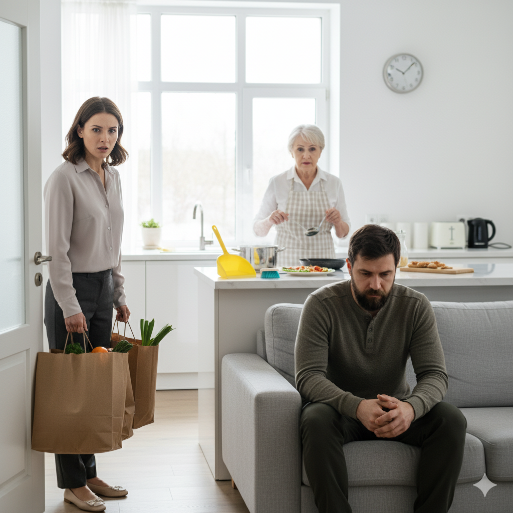 А в квартире Катю ждал сюрприз. Дима лежал на диване, а в квартире хозяйничала свекровь.