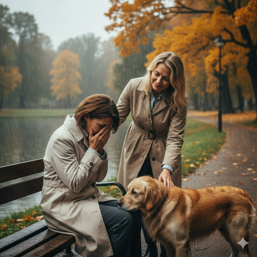Мужчина развернулся и зашагал прочь, оставив женщину стоять под начавшимся дождем. Она опустилась на мокрую скамейку и закрыла лицо руками.