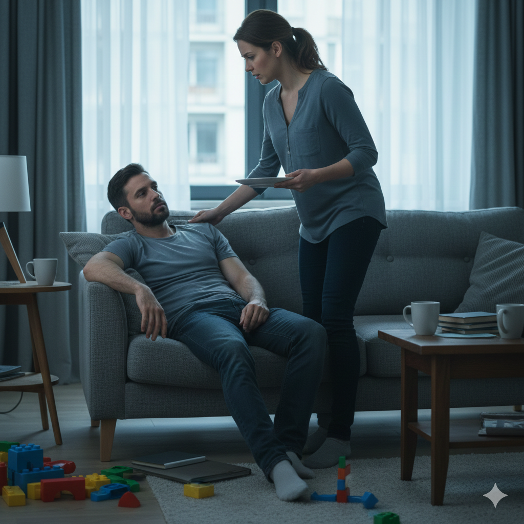 Я стояла над ним с тарелкой супа, которую он даже не взглянул. Три дня. Семьдесят два часа. Он лежал на том же диване, уставившись в потолок.