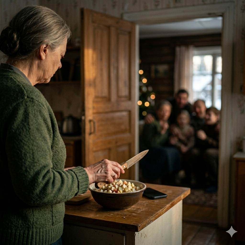 Тридцать первого декабря она резала салаты, когда из гостиной донёсся разговор. Голос Галины — тот самый, заговорщический, со смешками.