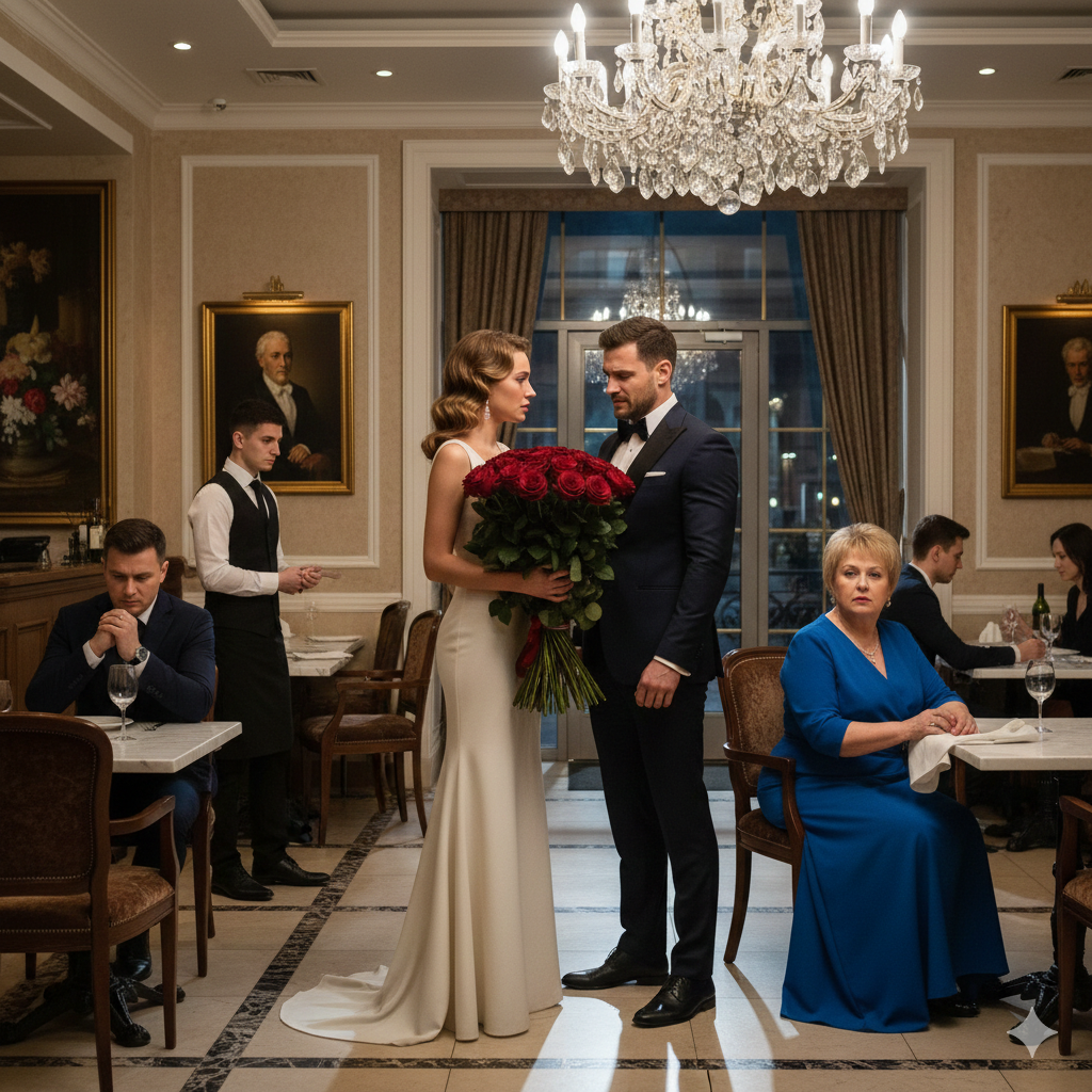 Артем пошел договориться о столике, пока Марине приносили букет цветов от заведения. Вдруг Галина Петровна взяла бокал, который предназначался ей, и демонстративно натерла до блеска салфеткой.