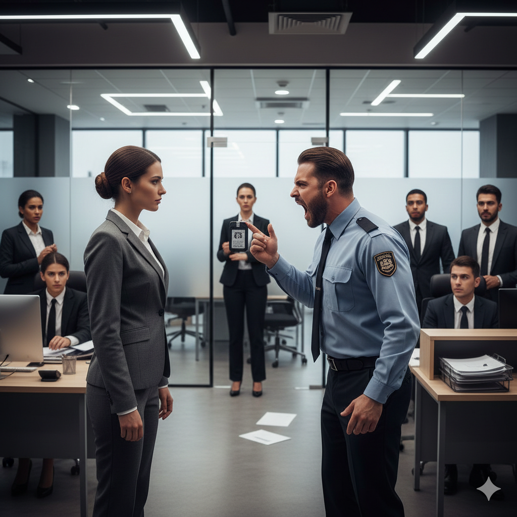 — Охрана, выведите этого человека. И передайте в отдел кадров, он уволен за нарушение трудовой дисциплины и оскорбление сотрудников.