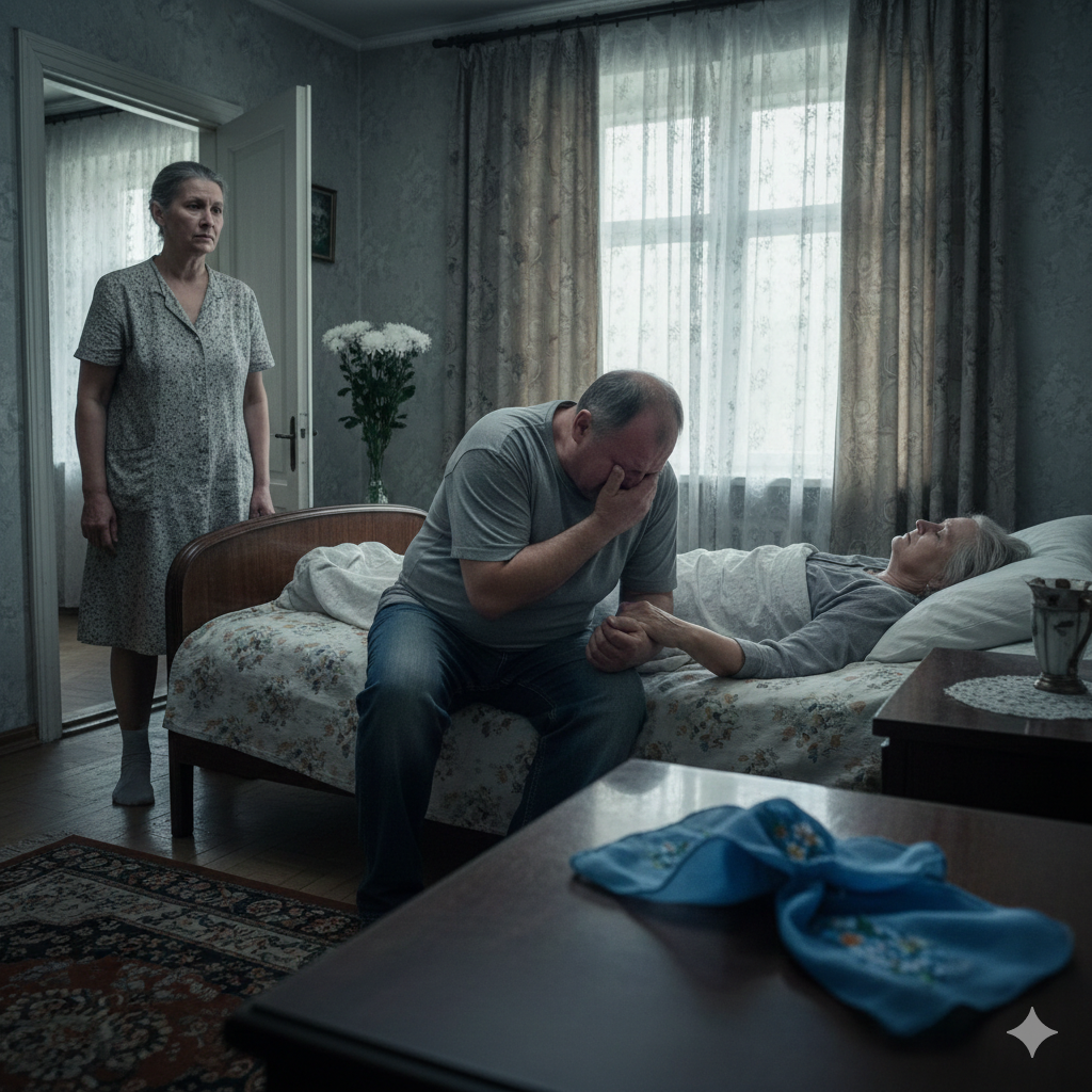 Мыла полы в спальне Анны Петровны. Свекровь дремала в кресле — лицо сморщенное, губы поджатые, даже во сне недовольная. На коленях платок лежал — голубой шёлковый, с вышитыми незабудками. Тот самый, который она вечно теряла.
