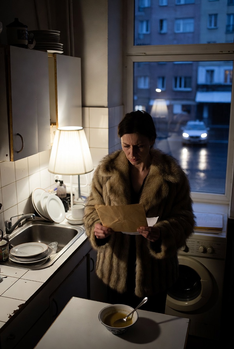 Потом пошёл на балкон — закурил, хотя давно бросил. Воздух наполнился сигаретным дымом. Нина стояла в кухне и глядела на шубу — блестела, как новая кастрюля. Стало горько и глупо. Хотелось вернуть всё обратно, но было уже поздно.