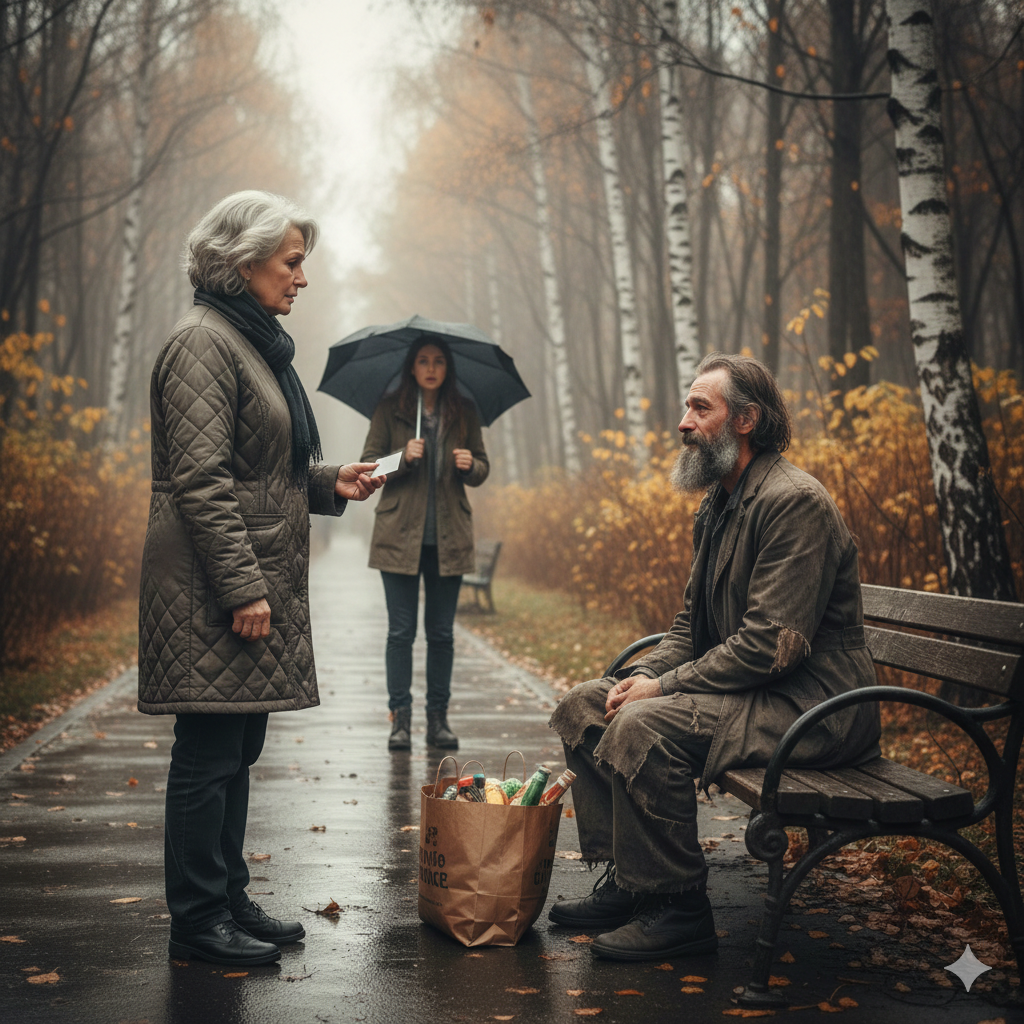 В трёх метрах от скамейки она остановилась. Виктор поднял голову и посмотрел на неё. В его глазах мелькнуло узнавание, потом удивление, а затем — страх. Он попытался встать, но ноги его не слушались.