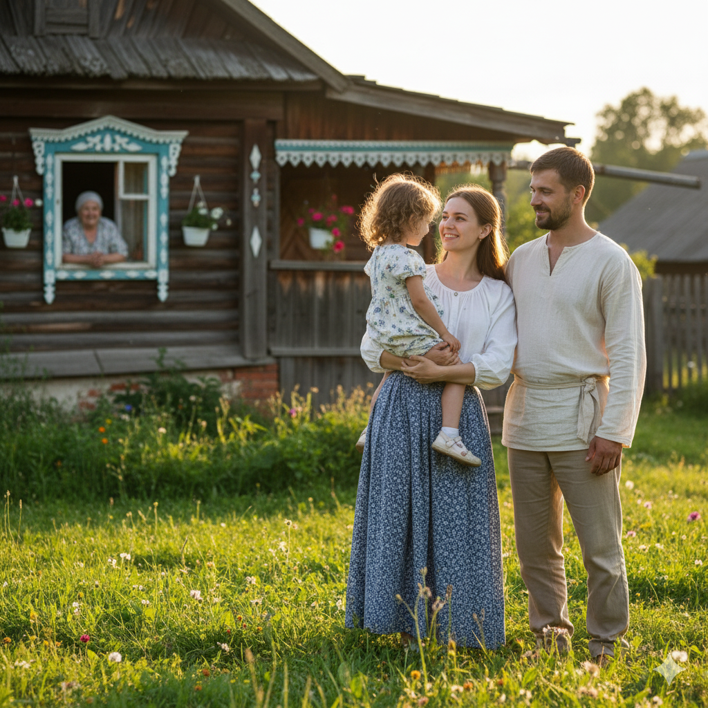 Сделала шаг в сторону пения, потом еще один и остановилась у заборчика. Во дворе соседнего дома бабушка укачивала на руках ребенка — совсем крохотную девочку. Чуть дальше сидел молодой мужчина и что-то мастерил.