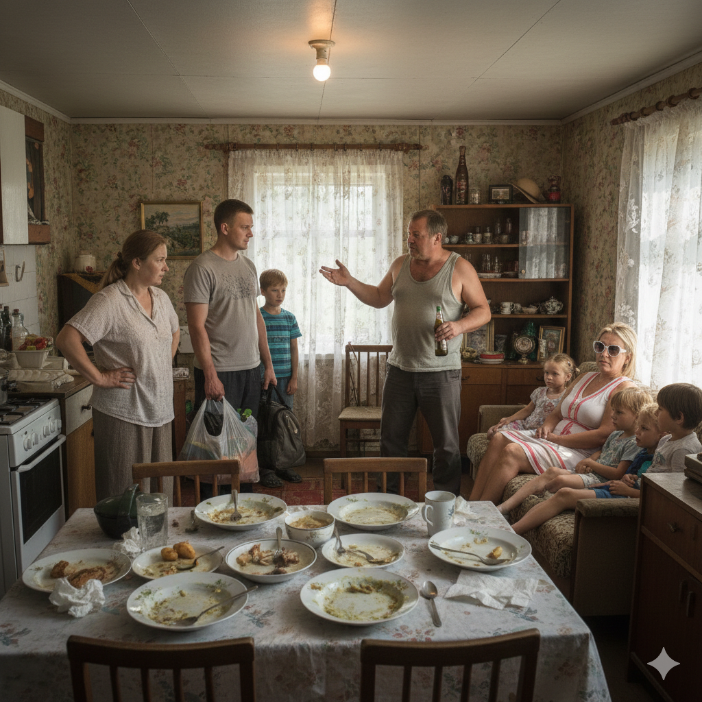 — Татьяна, что это сегодня было? Мы же вроде за столом договорились. Я тебя хвалил, а ты всё бросила и уехала. Посуда не мытая, стол не убран. А ведь в холодильнике ещё еда оставалась, где она?