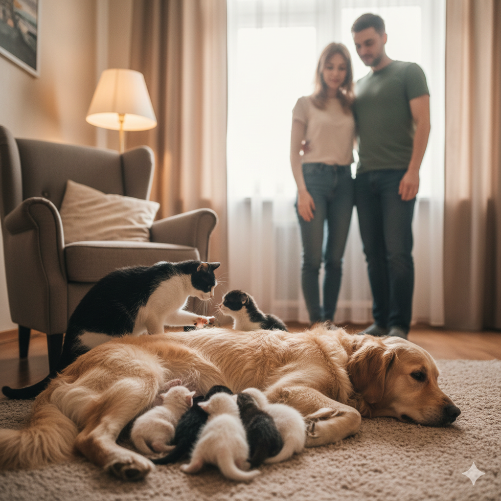Иван и Мария стояли на одном месте, словно зачарованные, и не верили своим глазам – сложно представить, что такое вообще может быть. Чтобы кошка своих детей принесла собаке, с которой еще недавно она выясняла отношения…