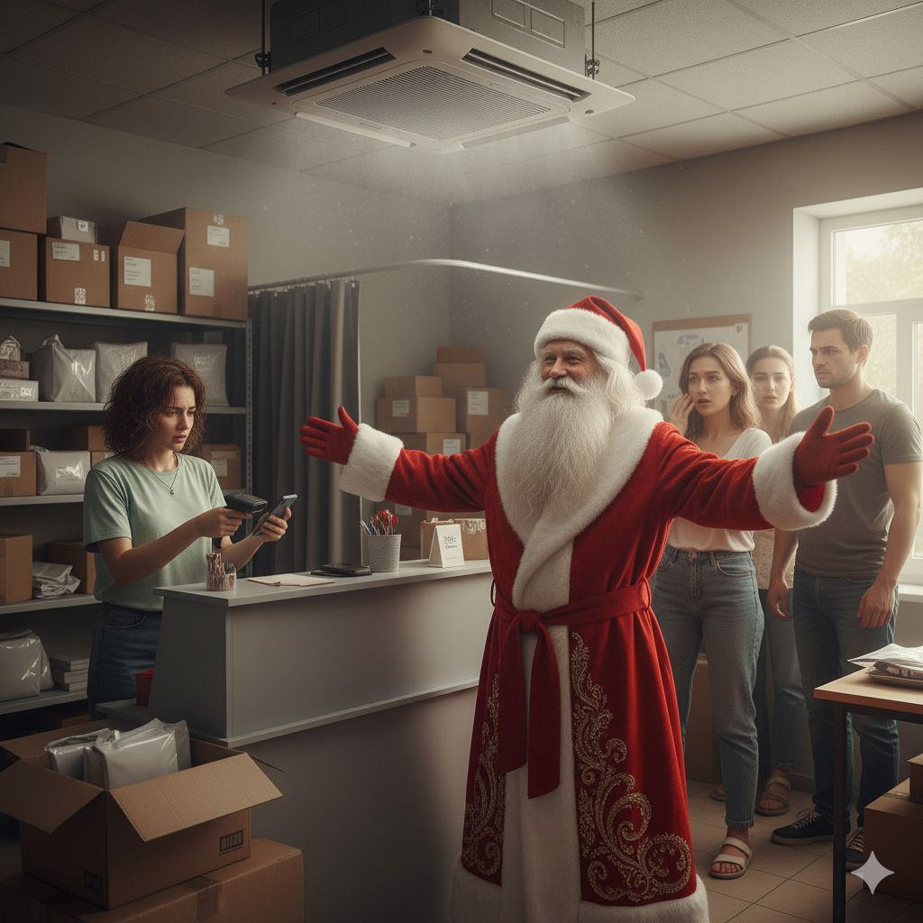 Вслед за ней и весь народ уставился на кондиционер, затем опомнился, и перевёл глаза на то место, где только что стоял дед Мороз.
