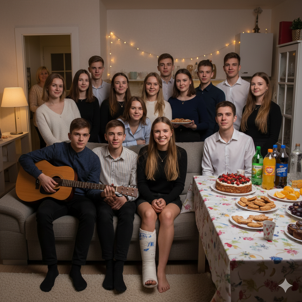 В их жизни будут ещё праздники, банкеты в ресторанах и возможность надеть красивые наряды, всё это будет, а сегодня им хотелось просто побыть всем вместе, ведь они друзья, они одна команда! Это их общий праздник, весёлый и грустный одновременно, и никто не должен был остаться в стороне…