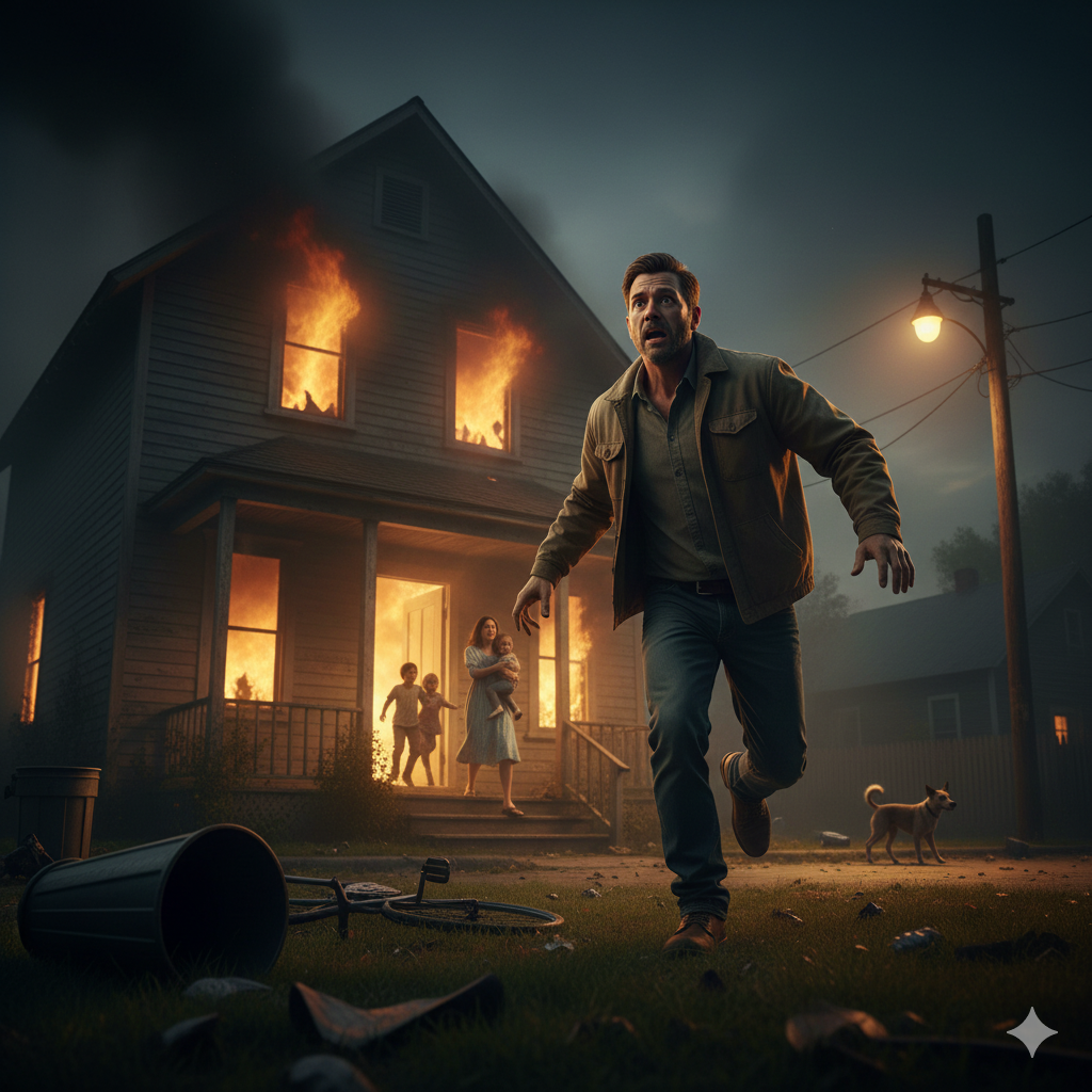 Его мысли прервал едкий запах дыма. Иван остановился и огляделся. Ветер нёс гарь со стороны его дома. Мужчина сорвался с мета, и побежал. Несмотря на усталость, он летел, словно стайер к финишу.