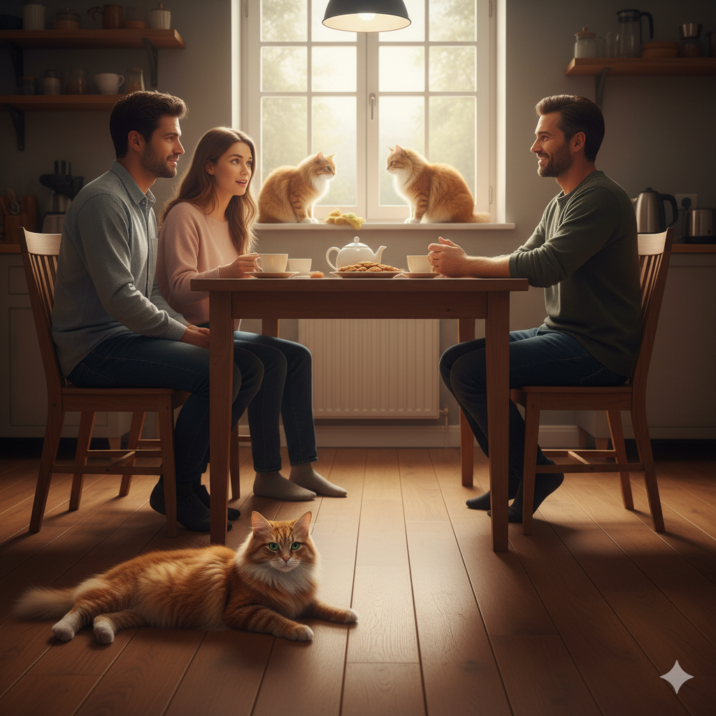 — Кс-кс-кс, иди ко мне, я тебя поглажу, — ласково позвал кота Олег. – Он просто хочет внимания, — пояснил он, обращаясь уже к нам.