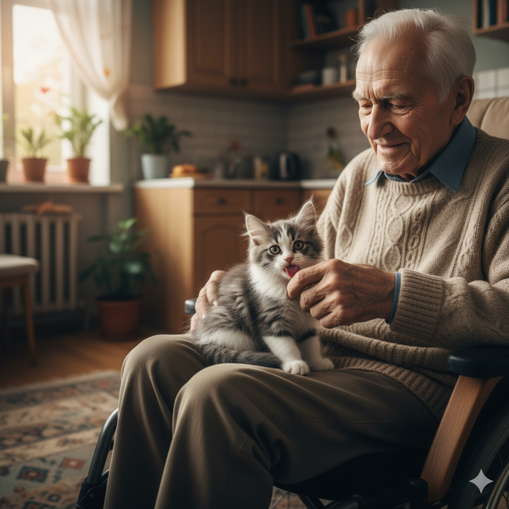 – Дед, ты что, кошку завёл? – спросила внучка, вытирая глаза. – Да как же ты справляешься, за ней же уход нужен!