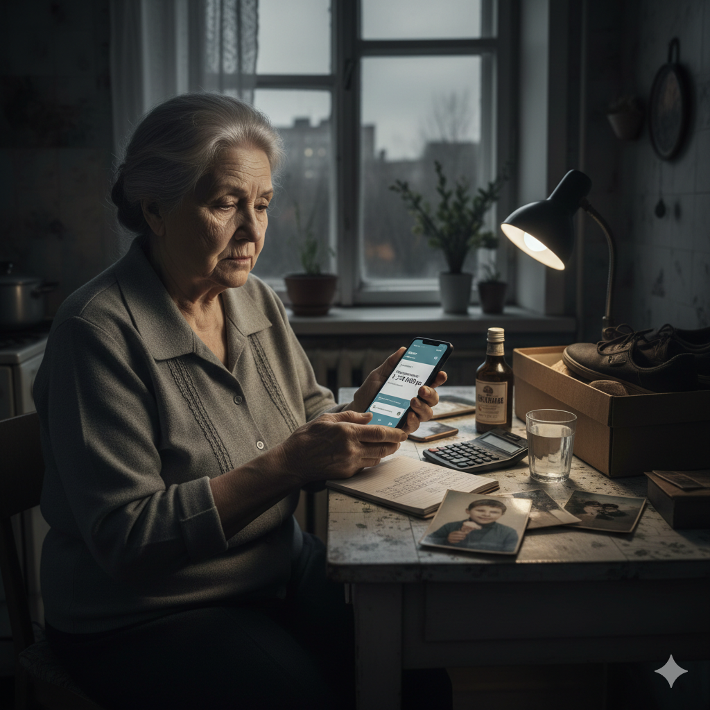 Ольга Семёновна сидела в темноте и смотрела на телефон. Цифра на экране светилась, как издевательство. Один миллион семьсот двадцать четыре тысячи. Он считал. Пятнадцать лет — считал.