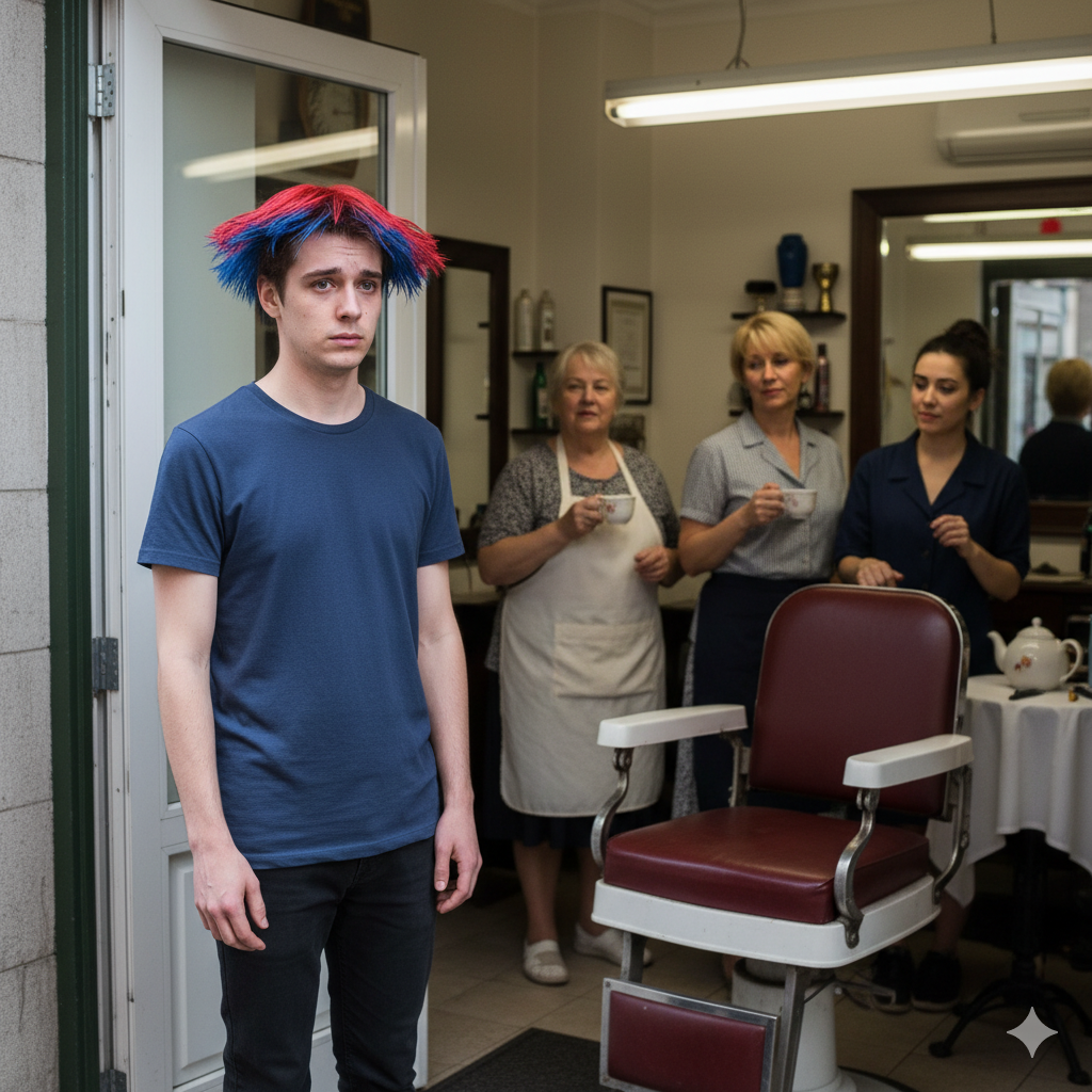 — Нет, молодой человек, в таком случае, я вас стричь отказываюсь… — твёрдо сказала пожилая парикмахер. Затем она посмотрела на свою коллегу, и неуверенно предложила: — Лен, может, ты его пострижешь?