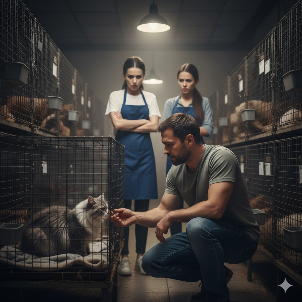 Но он вдруг остановился возле одной клетки. Там, на полу, лежала пожилая кошка…