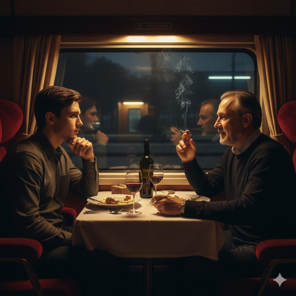 Поздняя осень. Вечер. Я еду в вагоне “СВ”. Напротив сидит мой случайный попутчик – мужчина лет пятидесяти. Мы не спеша ужинаем, пьём хорошее вино, курим и уже полдня беседуем на самые разные темы. Сергей Петрович (так зовут моего визави) совершенно не пьянеет. Я смотрю на него и любуюсь этим человеком: умным, обаятельным и, по всему видно, темпераментным. Есть в нём что-то от старого русского интеллигента. Речь его изобилует самыми неожиданными метафорами, яркими эпитетами, пословицами. Всё это разжигает интерес к нему. Слушаешь его и забываешь, что время уходит безвозвратно и что тебя ждут какие-то дела. Мне хочется спросить: кто он, чем занимается, на что истратил лучшие годы своей жизни; к каким выводам пришёл, глядя на этот мир.