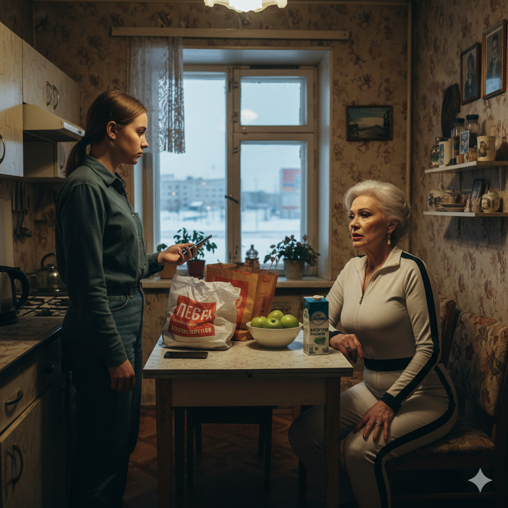 Ольга отперла дверь своим ключом, вошла в кухню и устало поставила полные сумки на кухонный стол И сразу же раздался недовольный голос бабушки: