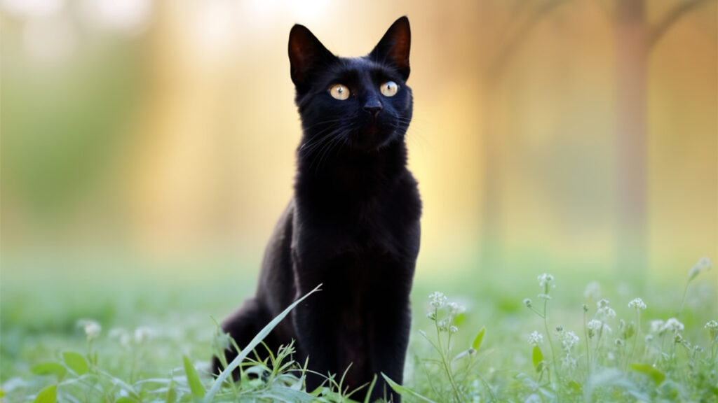 Мягко приземлившись на пушистые лапы с забора, чёрная кошка незаметно подкралась к двери…