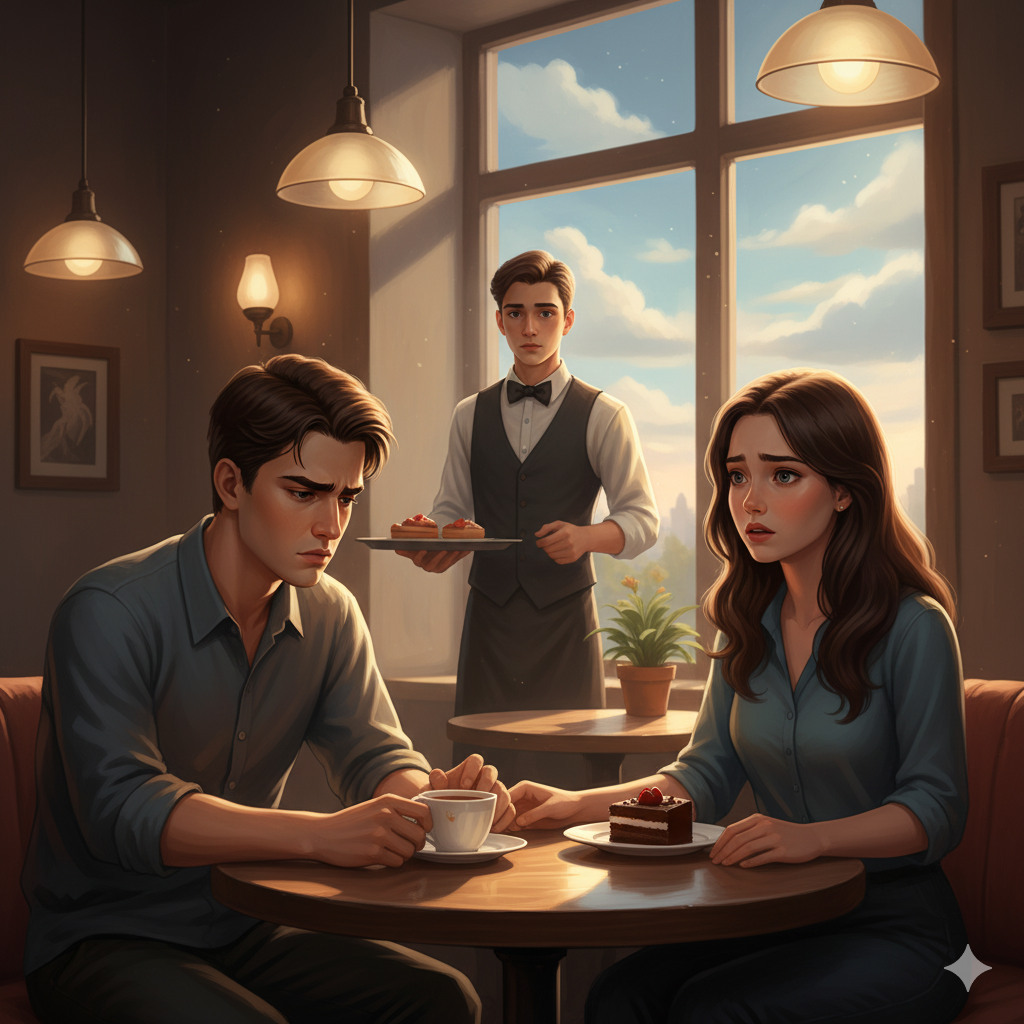 Даша, сидевшая напротив, недоумённо приподняла бровь. Она была искренне удивлена – казалось, ответ на вопрос Миши был для неё очевиден. Но в этот момент к столику подошёл официант с десертом, и разговор пришлось прервать. Пока сотрудник кафе аккуратно расставлял тарелки, оба молчали, каждый погружённый в свои мысли.