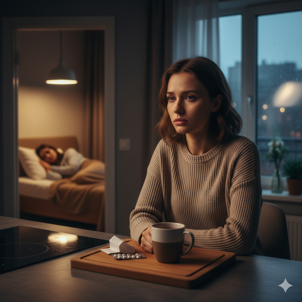 Ночью, когда малышка уснула, Маша сидела на кухне и смотрела на луну за окном. Где-то там, в палатке, её мама, а здесь, в этой тишине, Маша впервые за долгое время чувствовала что-то, похожее на покой.