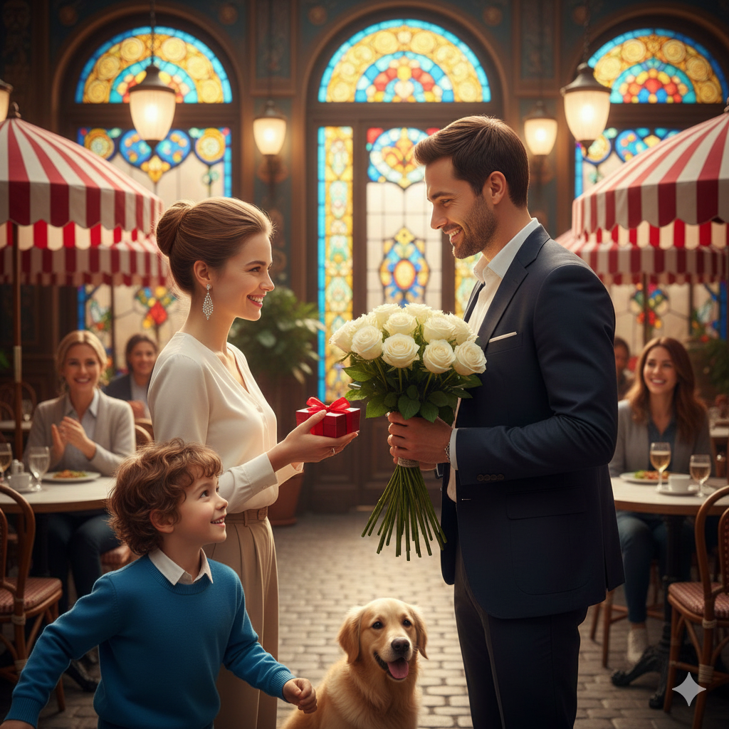 За их любимым столиком, у окна с витражными стёклами, сидели все, кого она любила больше всего на свете. Марат – в аккуратно выглаженной рубашке и тёмном пиджаке, Юра – в нарядной синей кофте и с блестящими от восторга глазами, а рядом с ними – Арчи, который, увидев Лику, тут же вскочил и радостно завилял хвостом.