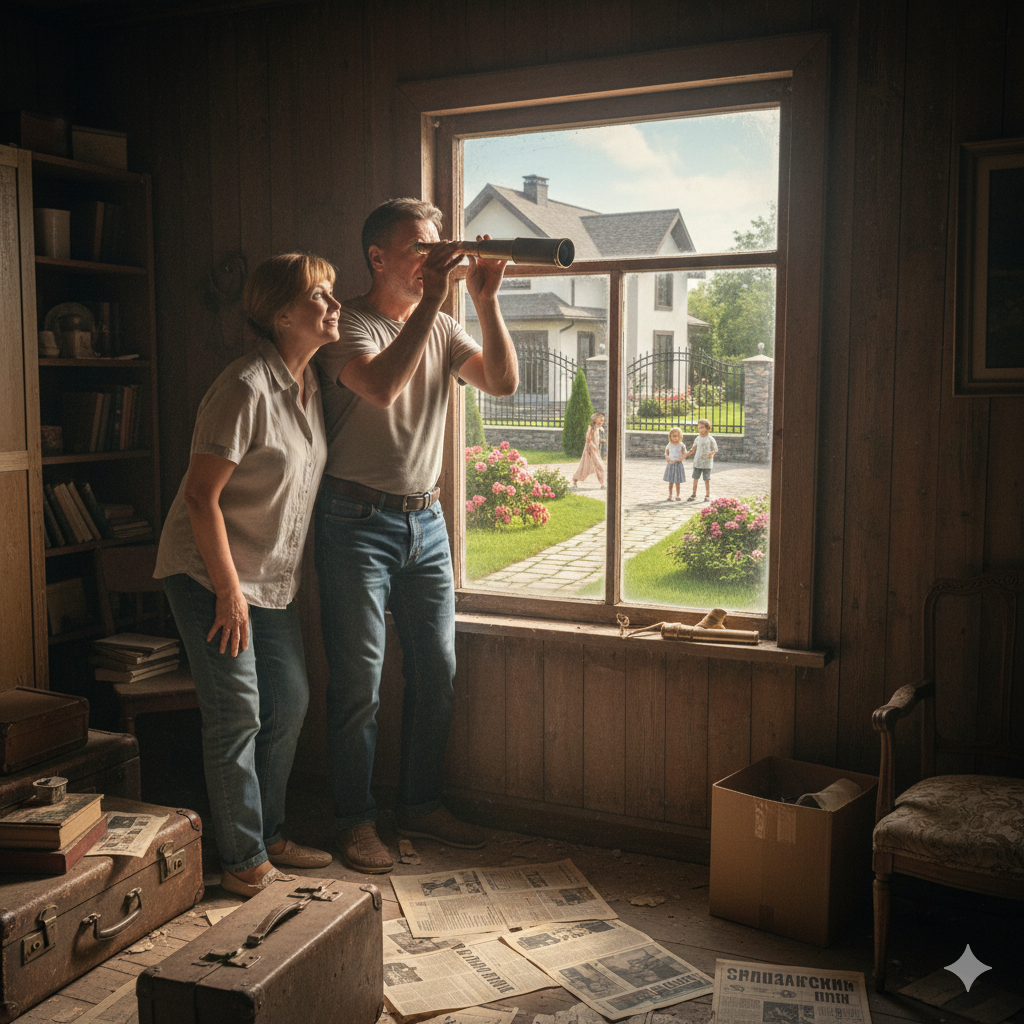 На чердаке у Михаила лежал мёртвым грузом подарок. Он даже не помнит, кто подарил ему подзорную трубу. Тогда все посмеялись: «будешь за соседями подглядывать.»