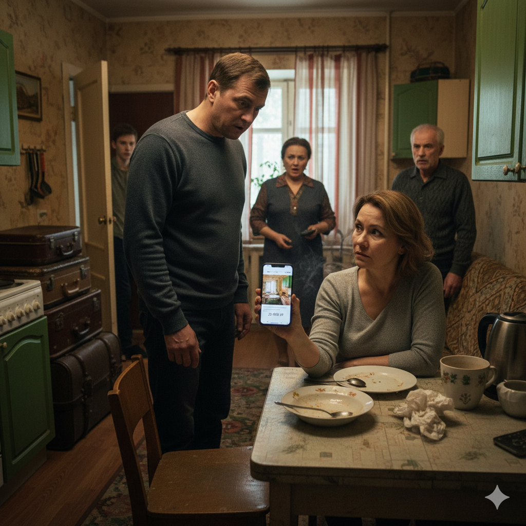 Светлана смотрела на экран телефона и не могла вдохнуть. На фотографии была кухня свекрови — те самые зелёные шкафчики, те самые полосатые занавески. Квартира, в которой якобы уже четвёртый месяц шёл ремонт. «Сдаётся двухкомнатная, 35 000 ₽». Объявление висело с сентября.