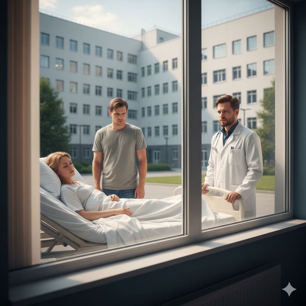 — Не бросай меня! – рыдает Лена, протягивая к нему руки. — Прошу. Врачи говорят, что я поправлюсь.