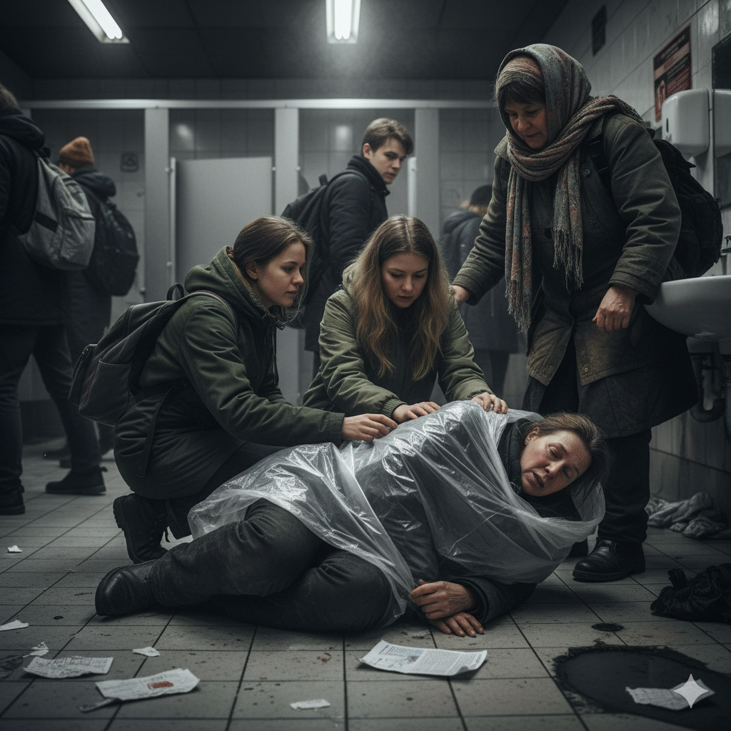 В начале третьей недели женщину обнаружили волонтёры из группы социальной помощи при Даниловом монастыре, приходившие на вокзал кормить бездомных. К туалету их привела та самая Софико. Она не объяснила, в чём дело, только делала таинственные знаки и всё повторяла: «Сюда, сюда», будто боясь, что иначе те не пойдут за ней. И лишь в огромном холле у самого входа в туалет, стала громким шёпотом рассказывать всё, что знала о больной. Волонтёры слушали молча.