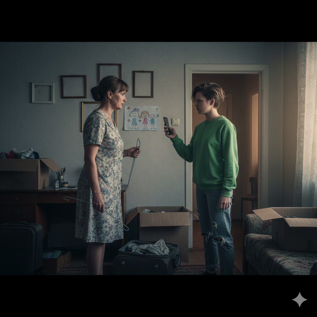 Под такие колкие реплики шёл сбор вещей. Регина старалась не обращать внимания на обидные слова – она уже наслушалась их сполна. Она аккуратно складывала в коробку свои рисунки, старые открытки от бабушки, плюшевого зайца, которого хранила с детства. Каждая мелочь напоминала о временах, когда в доме было спокойно и уютно.