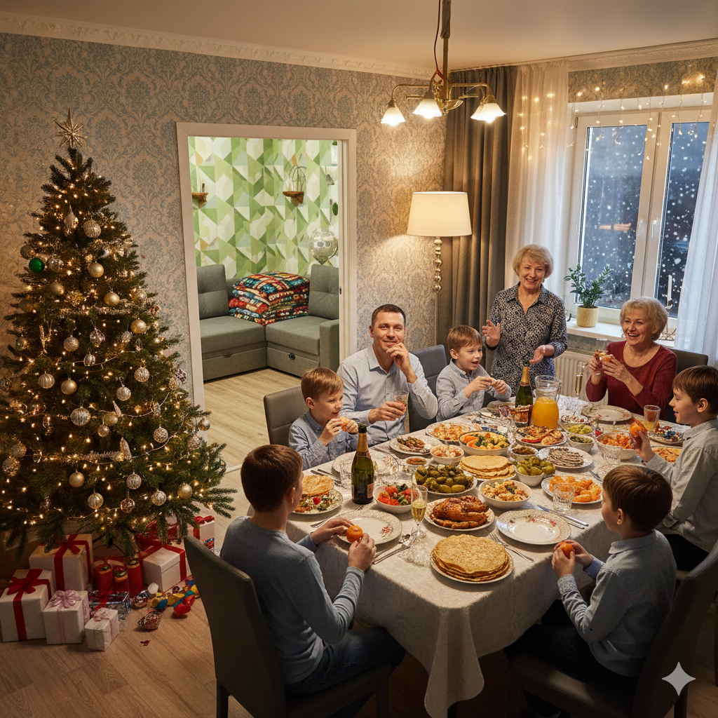 Алексей вернулся за три дня до праздника. Город сиял. Он надеялся на благоразумие родственников, но в шесть утра его разбудил стук в дверь. Вся семья в полном составе была на пороге. Двадцать девятое декабря. Родители, сестра Вера, её муж и трое их детей: пятнадцати, тринадцати и десяти лет.