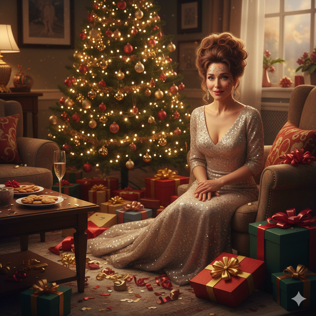 Итак. Вчерашний вечер. Я в нарядном платье, на голове высокая прическа для торжеств. Дом украшен мишурой и фигурами лошадей под гжель. Супруг в сорочке пастельных тонов.
