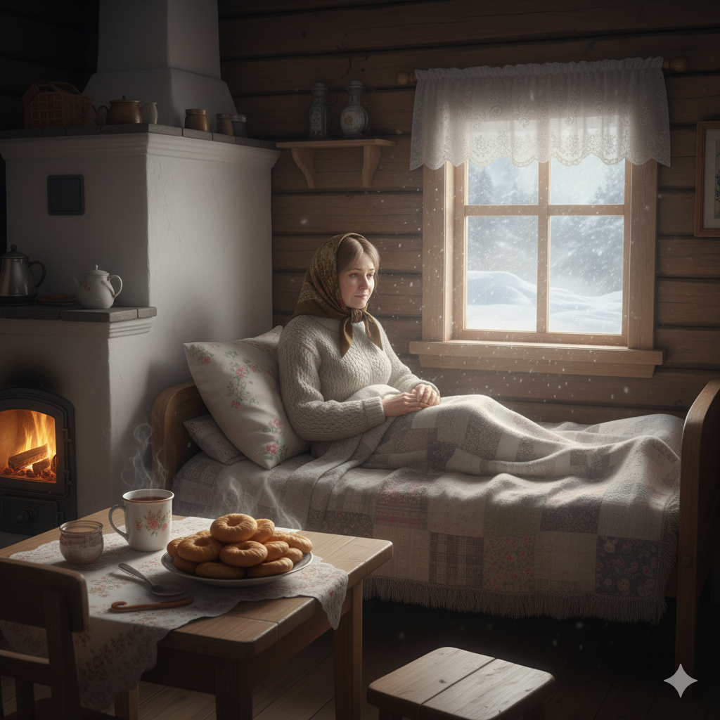Печка топилась и потрескивали в ней дрова. Серафима налила внучке горячий чай и поставила перед ней тарелку с ее любимыми пирожками.