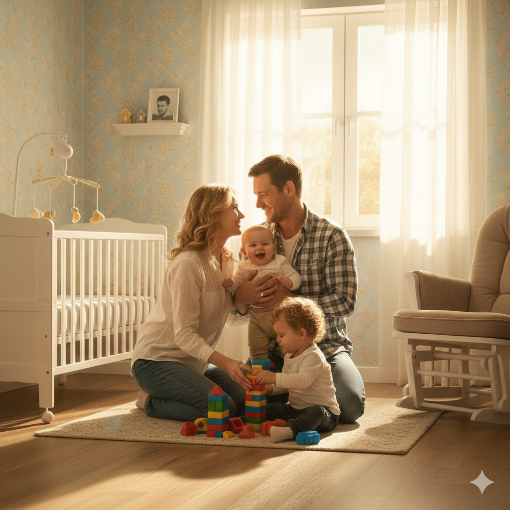 — Денис, не помог бы ты мне детскую комнату оборудовать, потом у меня не будет времени. Я тут гуляла и подсмотрела обои в детскую.